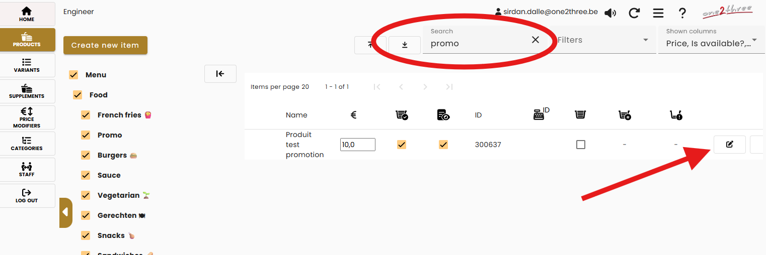 - Find the product you want to highlight using the search bar.