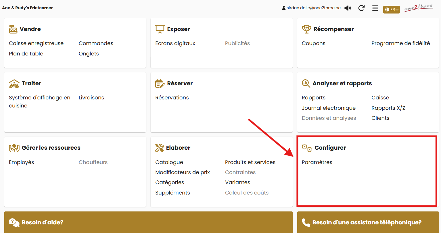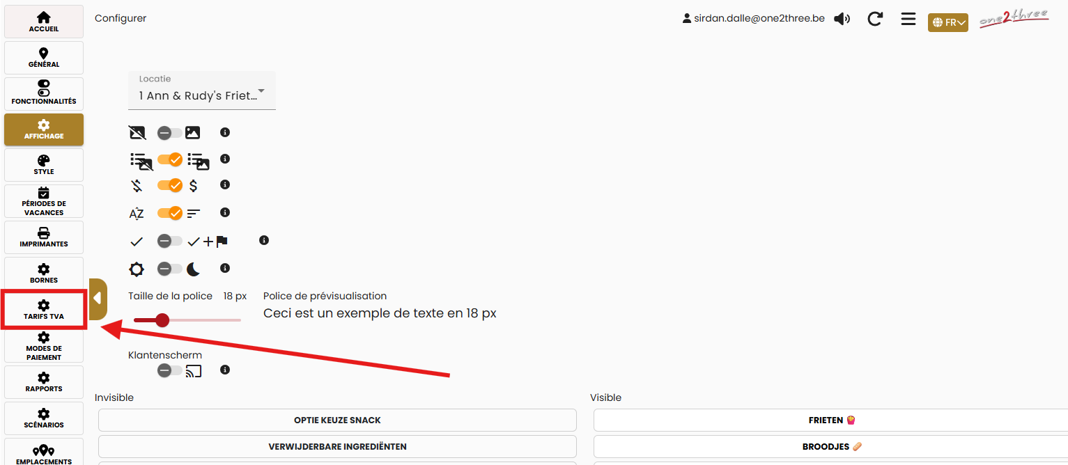 Aller à tableau de bord one2three → Paramètres → Taux de TVA