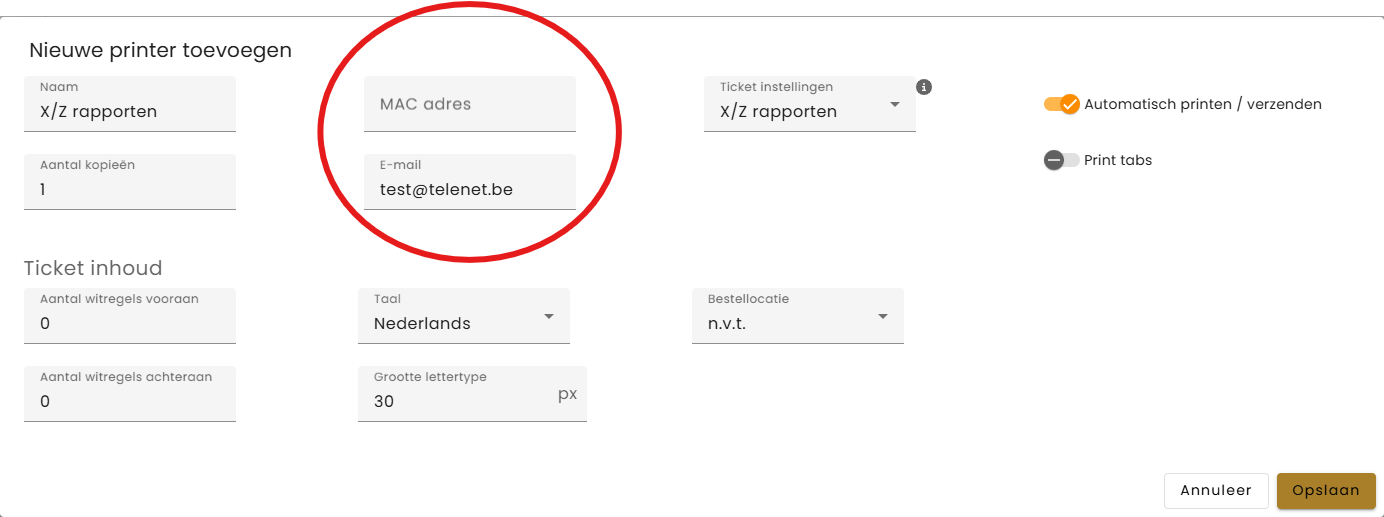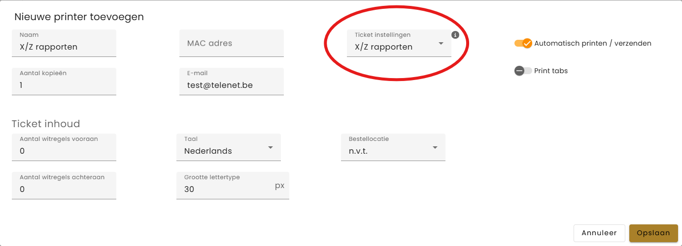 Pour imprimer correctement vos rapports Z ou les recevoir par e-mail, vous devez configurer une imprimante dédiée aux rapports X/Z.