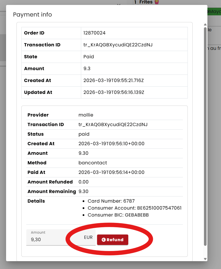 Le remboursement ne se fait pas via votre compte bancaire, mais via votre solde Mollie.