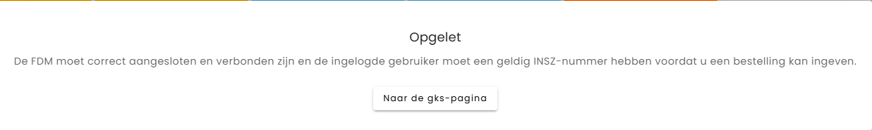 De FDM moet correct aangesloten en verbonden zijn en de ingelogde gebruiker moet een geldig INSZ-nummer hebben voordat u een bestelling kan ingeven.