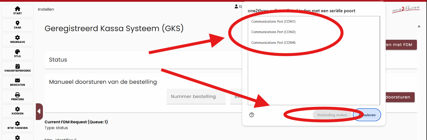 - Kies een COM-poort en klik op Verbinding maken