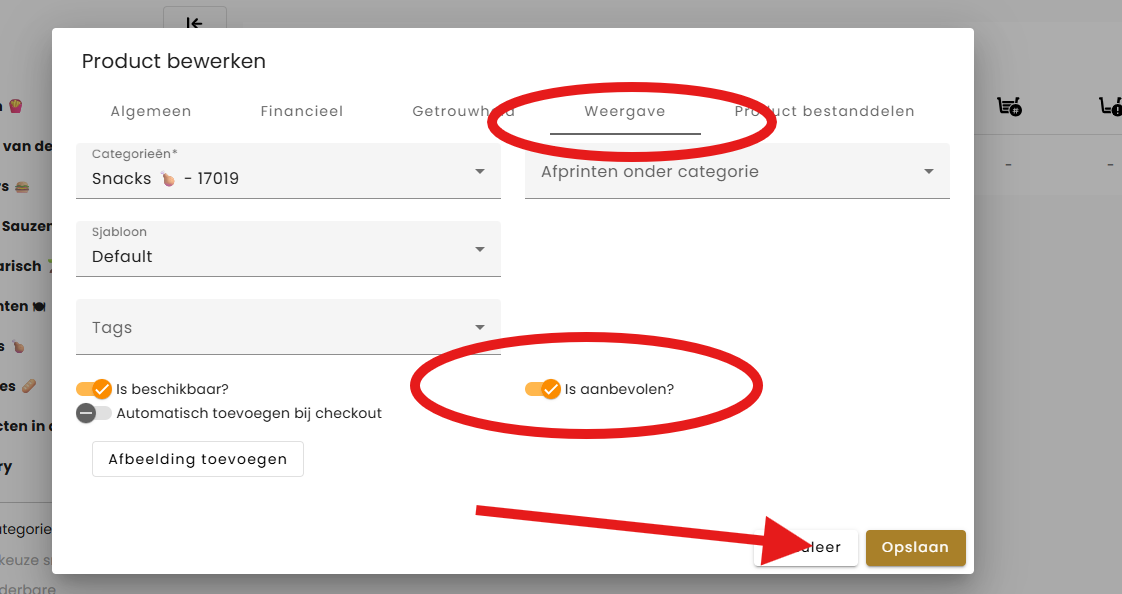 Dan kan je dit doen door het product als aanbevolen in te stellen.