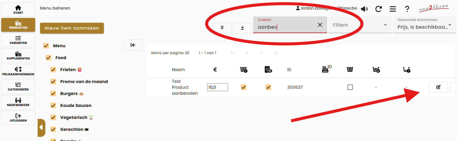 - Zoek het product dat je wil aanbevelen en klik op het wijzig-icoontje.