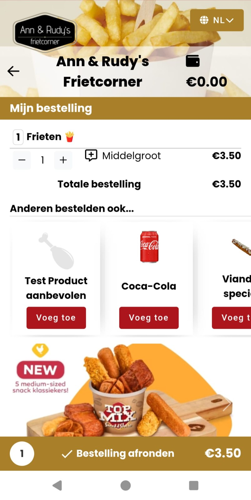 Het product wordt nu getoond in de lijst van aanbevolen producten wanneer een klant een bestelling plaatst via de mobiele webshop.