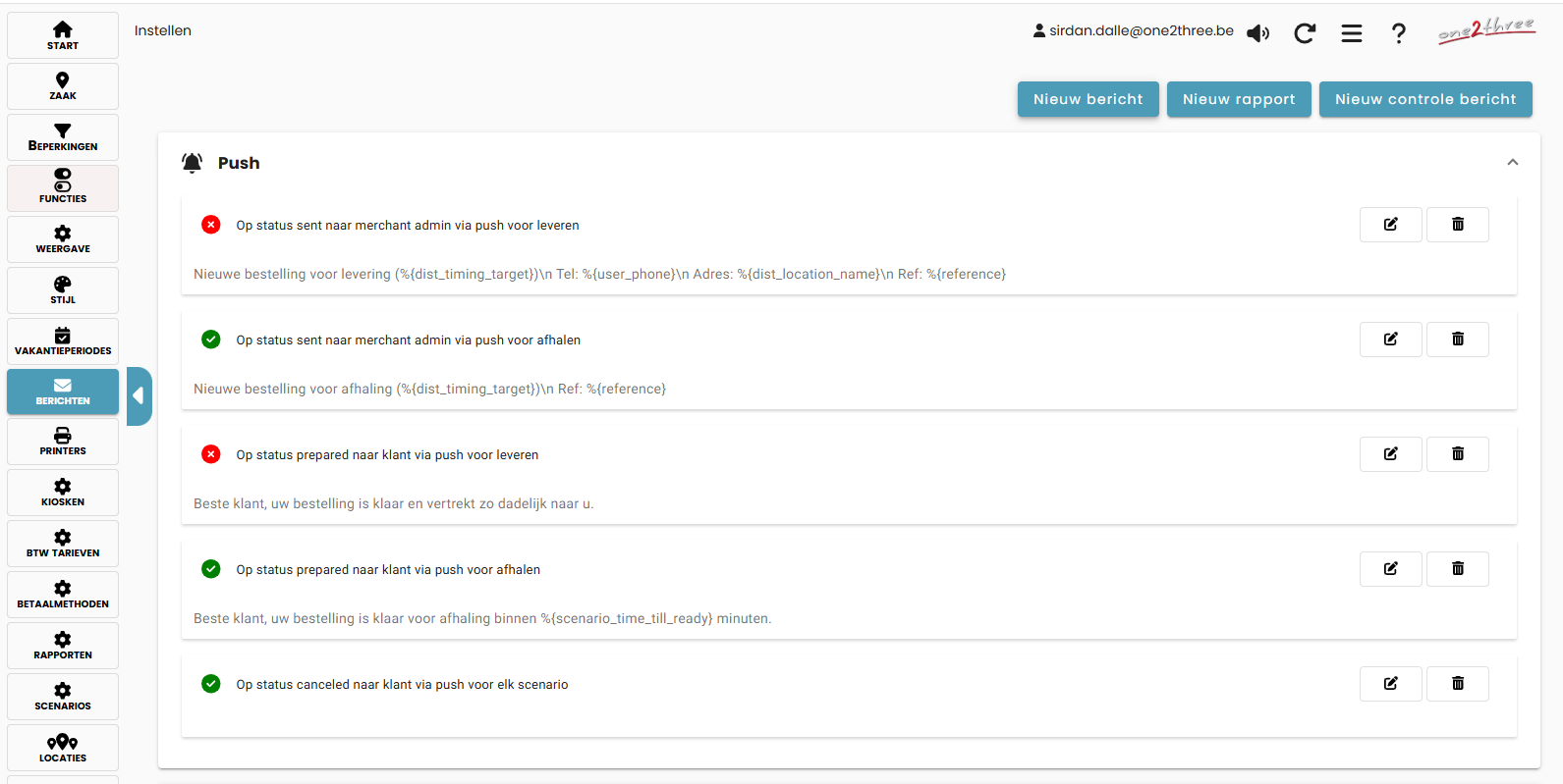 Ga naar het Berichtencentrum en open de tab Pushberichten.