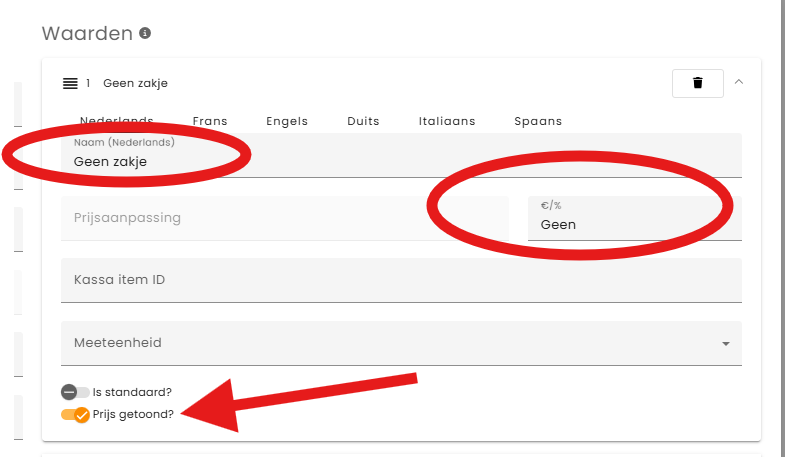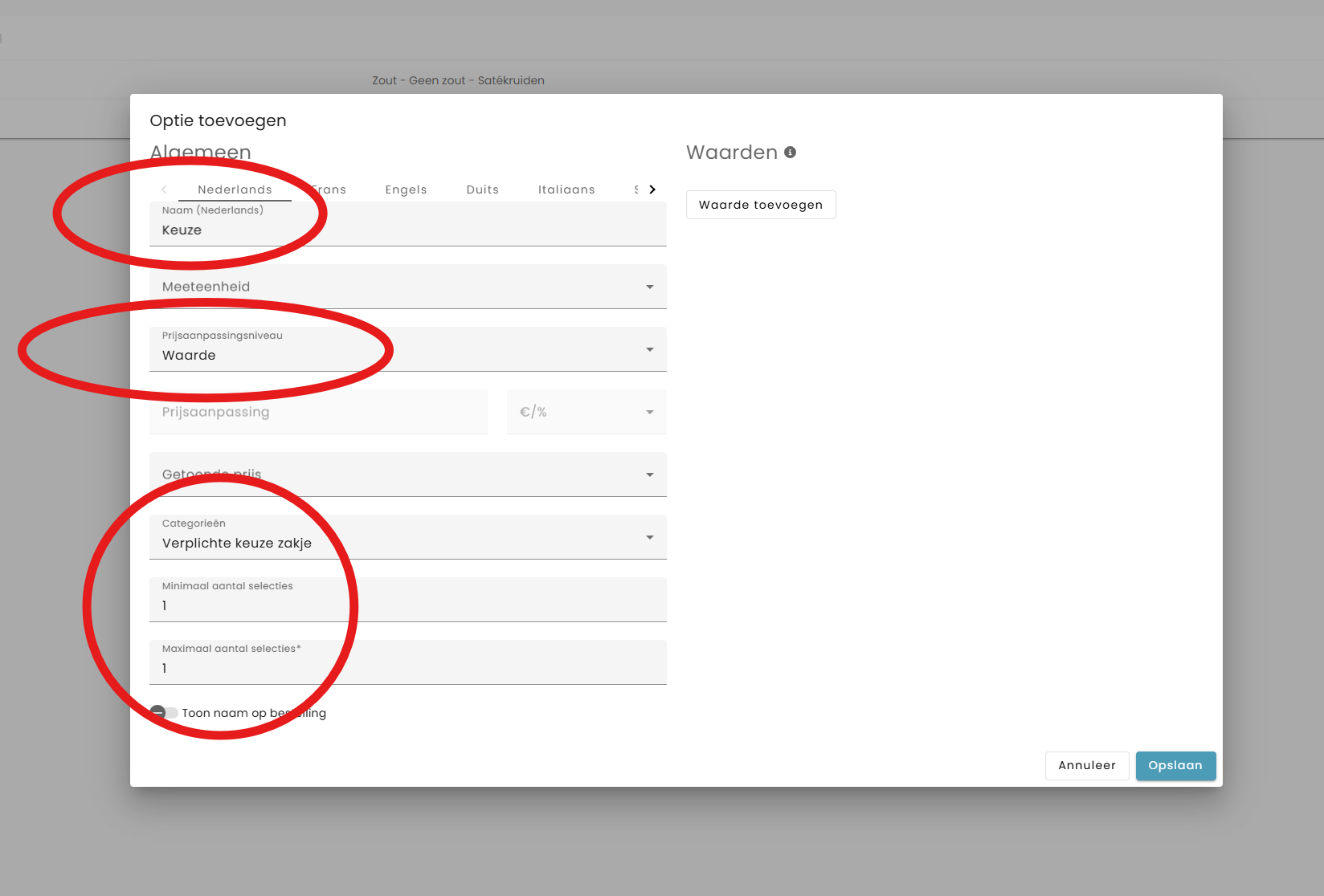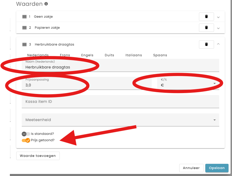 Klik op ‘Waarde toevoegen’ en voeg de opties toe: