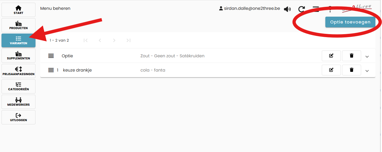 Klik rechtsboven op ‘Optie toevoegen’.