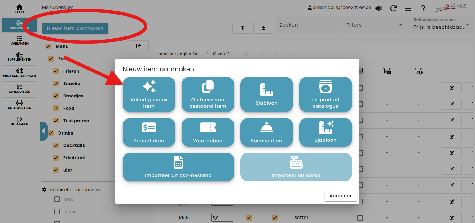 Kies voor Volledig nieuw item.