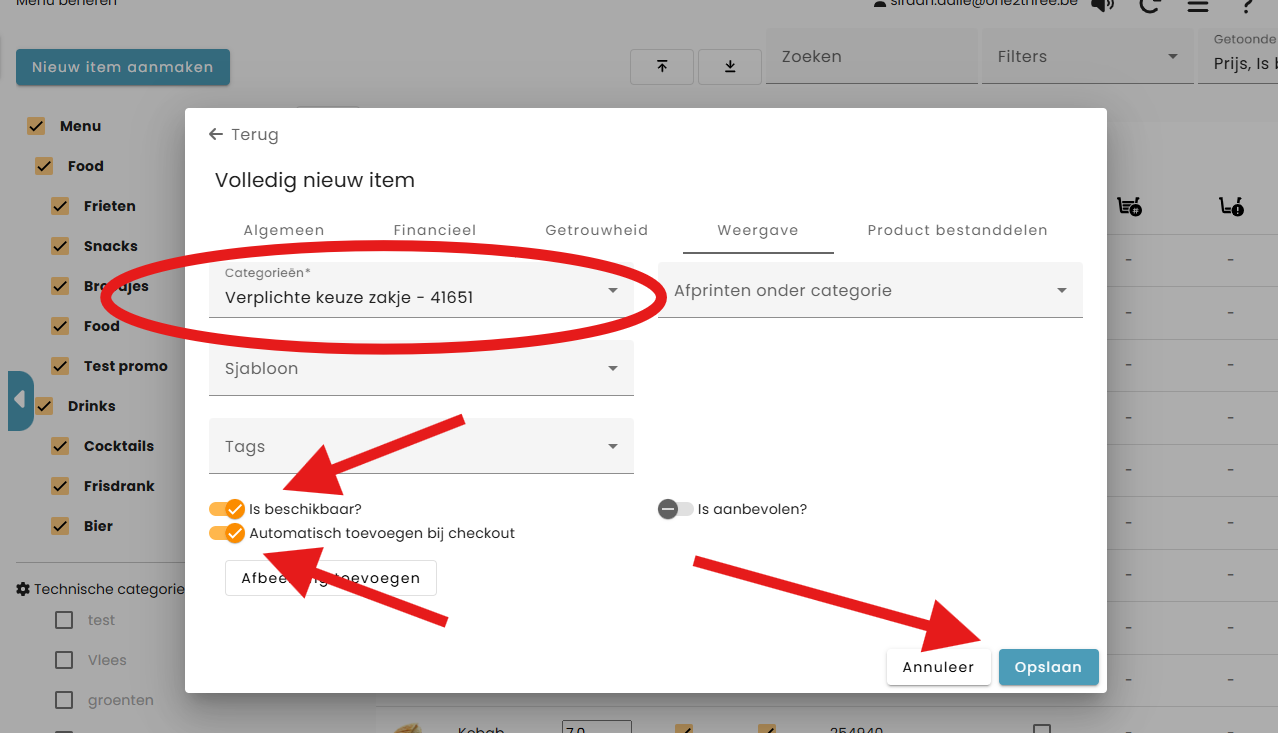 Optioneel: je kan een afbeelding toevoegen aan het item.